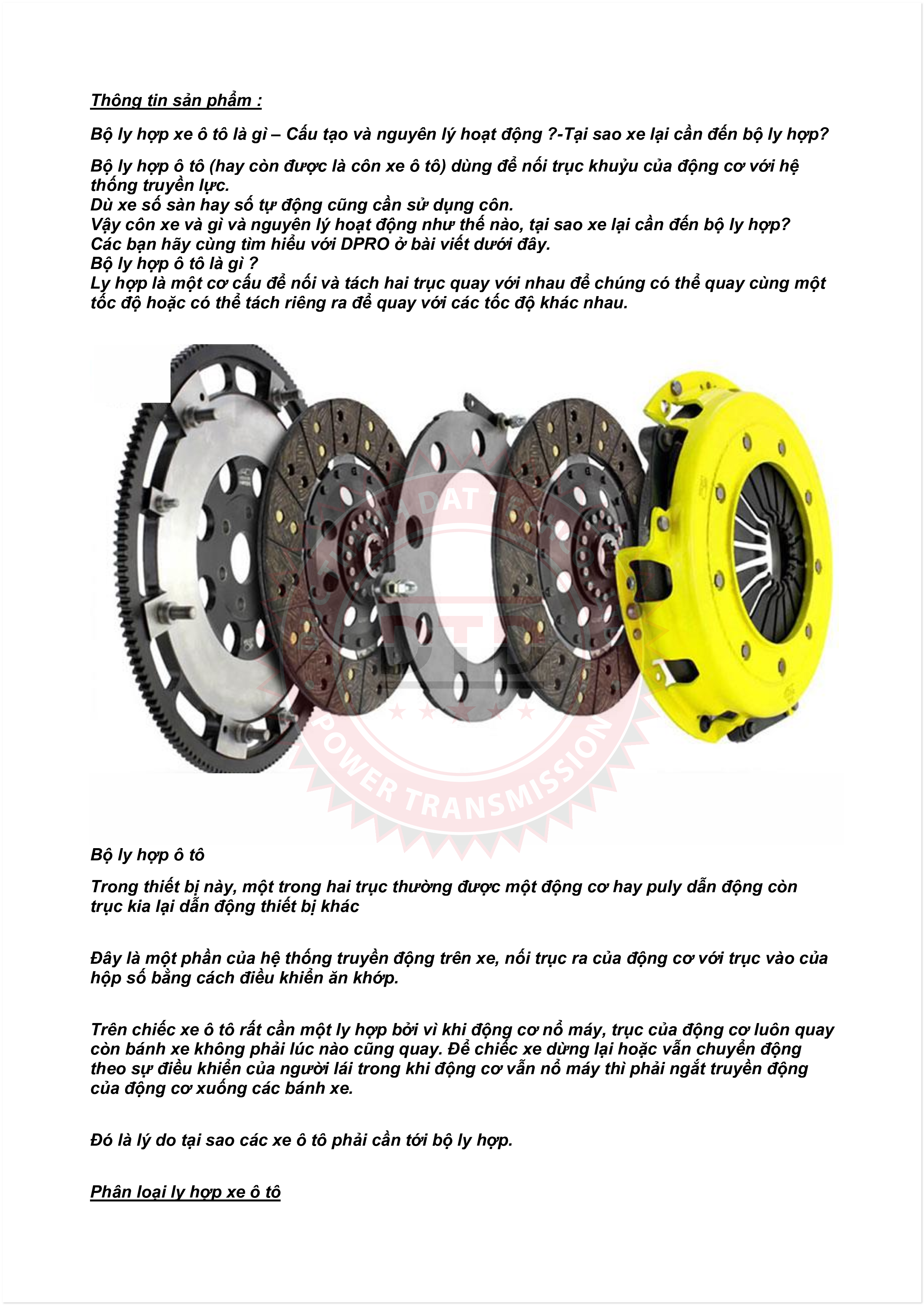 Thư mời hợp tác sản phẩm bàn ép, lá côn - hệ thống ly hợp xe ô tô